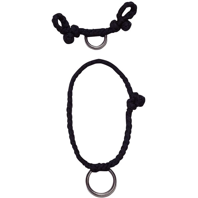 Jerk Line Set includes bit attachment with centered D ring and saddle attachment with braided round ring. Hondo construction allows quick change from horse to horse.