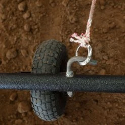All new redesigned legs for the most realistic roping practice available. Legs cross and stretch back when a heeler has a dally, similar to a live roping steer. Sled is coated with a rubber-like protector for added durability. The RR-5 includes a breakaway hitch and wheels. The breakaway hitch comes unfastened from the tow vehicle when the sled is roped and turned left by the header, allowing for a complete team roping run.
