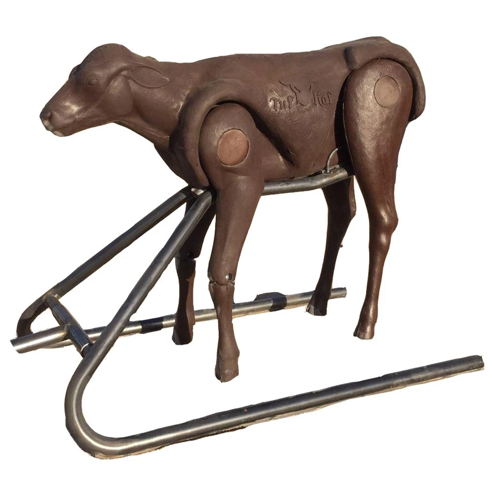 Tuf Kaf Trainer is an Elite Tie-Down Roping Training System that represents a very realistic replica of a live calf that will greatly improve and speed up the calf-roping ability of a person practicing for rodeo competition. Tough and durable, solid flexi-foam rubber, realistic moves, great rope actions and life size. This realistic calf emulates a life size calf and will get your horse to rate while youโre in perfect position to rope, deliver, pitch your slack and allow the calf to stop and pop off the sled.