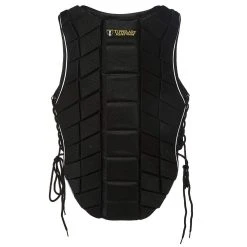 ย The Tipperary Eventer offers upper body protection for riders of all levels without restricting movement. The lightweight, dual density foam segments provide a high level of impact reduction. The patented FLEX construction ensures maximum mobility, a comfort fit and superior air circulation. The full-length zippered front closure allows for easy on and off and the side laces provide a personalized fit. Riders will experience improved posture. Angled at the front, the Eventer accommodates various rider positions while the extended back covers the tailbone. The shell is covered in lightweight and breathable Durasport for long-lasting wear and easy care. Features a soft roll collar for added comfort.